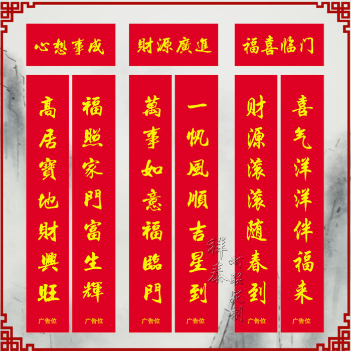 菏澤市牡丹區祥泰印刷有限公司位于菏澤市高新開發區。是目前菏澤地區對聯生產廠家,有十幾年的生產經驗和技術,公司擁有2.2米印刷機,輪轉機等三十余臺印刷和燙金設備。依托良好信譽和過硬的質量,贏得各界客戶的好評。我公司將以“質量過硬,客戶至上,銳意進取;為宗旨,以“價格低,質量好,交貨快”的服務,與客戶共同發展!