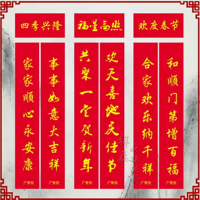 菏澤市牡丹區祥泰春聯印刷廠始終堅持:“重質量、講誠信、高效率”的經營原則。不斷的為客戶提供高質量的產品,歡迎新老客戶光臨合作!春聯印刷廠,對聯印刷廠,
