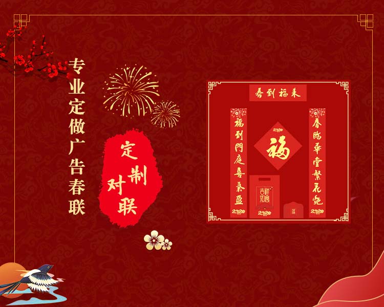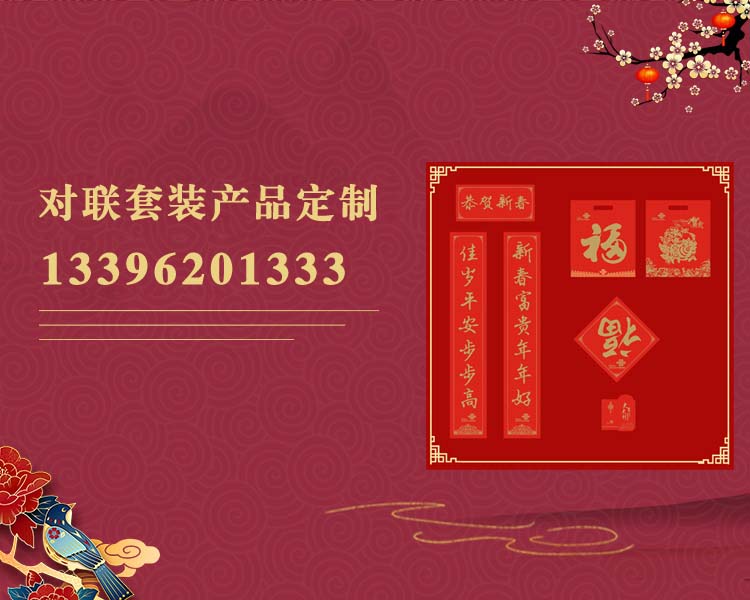 公司主要產(chǎn)品:廣告春聯(lián)、定做春聯(lián)、定制春聯(lián)、禮品春聯(lián)、高檔廣告春聯(lián)制作.促銷廣告春聯(lián)等,我們的服務(wù)宗旨:信譽(yù)比承諾好、質(zhì)量比價(jià)格高。我公司是菏澤專業(yè)的春聯(lián)印刷廠和對(duì)聯(lián)印刷廠。是專業(yè)生產(chǎn)和設(shè)計(jì)對(duì)聯(lián),年畫春聯(lián)印刷廠、春聯(lián)印刷廠、對(duì)聯(lián)印刷廠、春聯(lián)印刷廠、定做春聯(lián)廠家、春聯(lián)印刷廠家。